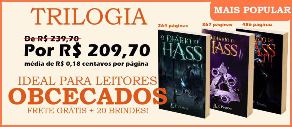 Sabe aquela sensação de terminar um livro incrível e ficar contando os segundos, ou dias, para descobrir o que acontece em seguida? Aquele vazio que fica até o próximo volume chegar? Com a Duologia de “O Diário de Hass”, essa espera não existe. Você terá os dois primeiros volumes em mãos, prontos para te levar direto para o coração da saga, sem interrupções.